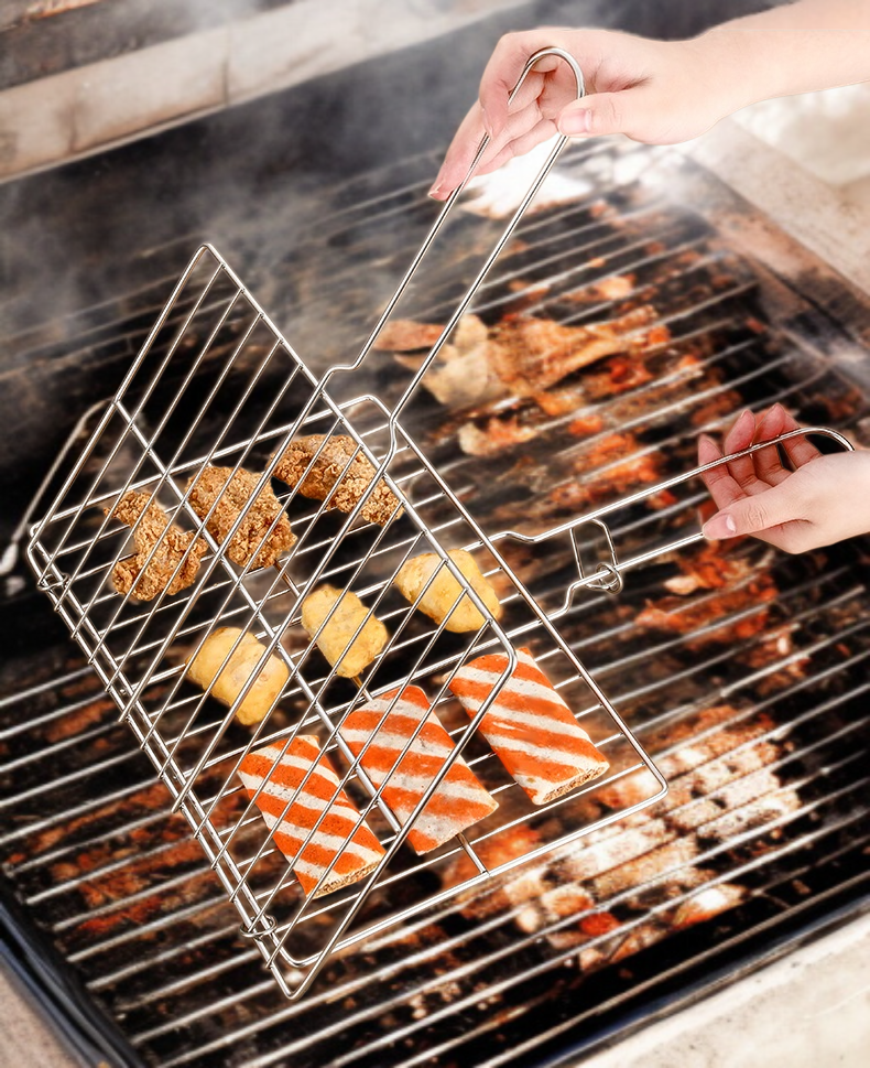 다용도 접이식 바베큐 도구 핸드헬드 경량 바베큐 그릴 바베큐 그릴 직사각 생선 그릴 집 밖 소성 요리 도구